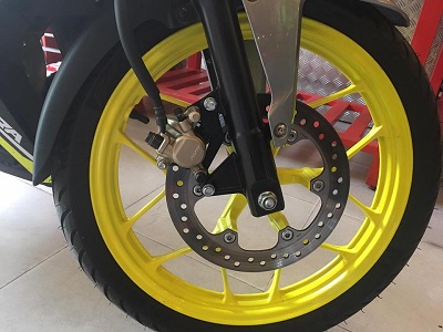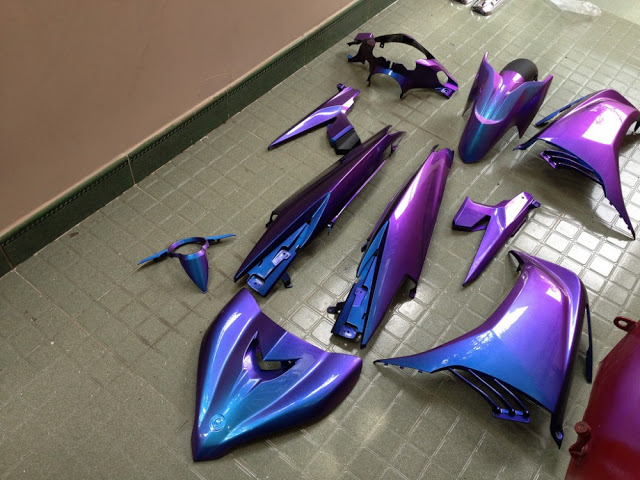 Sơn tổng thể cho xe máy thông thường bao gồm cả bộ áo xe, vành xe, giảm xóc, tay dắt sau, bưởng máy.